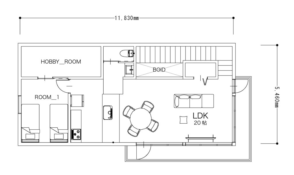 ガレージから居住空間へとつながる動線は、趣味と暮らしを自然に融合させる設計です。