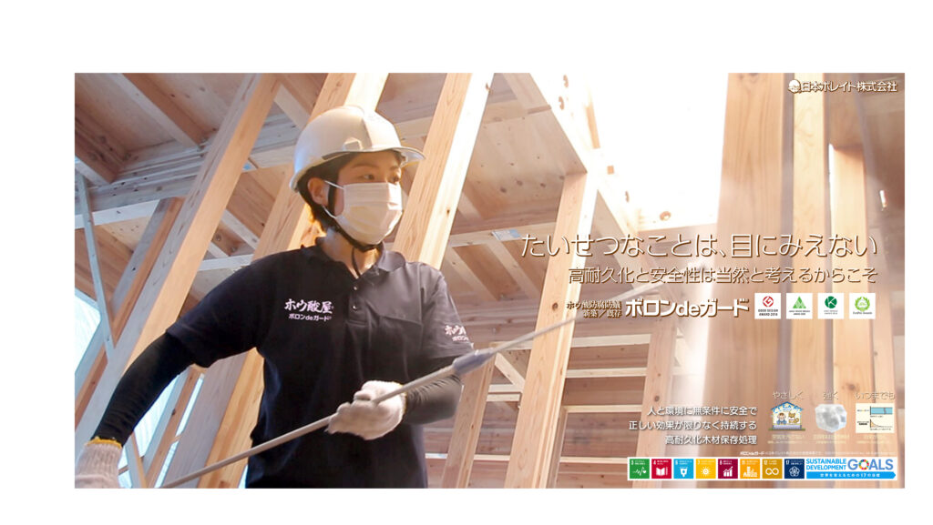 床組や地盤から1m以下の地面に近い壁構造体など、再処理の不可能な場所へは新築時にしっかりと「ホウ酸処理」を行います。