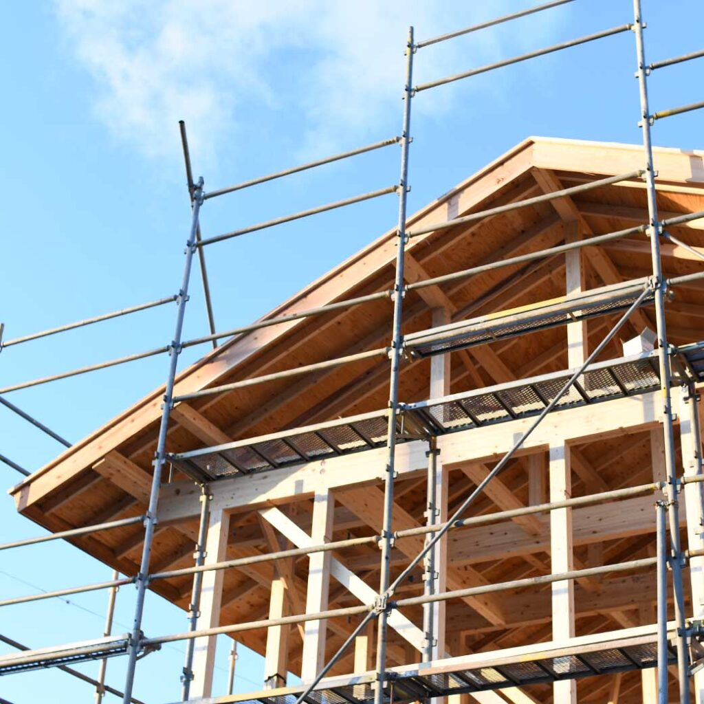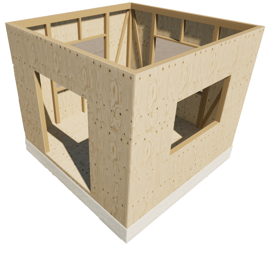 従来の在来軸組構法の外周部に構造用面材を貼ることで安定的な耐力壁を増やすことができます。